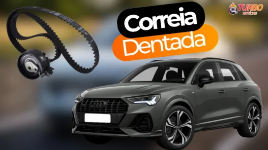 Se o seu Q3 é 1.4 (150 cv), ele usa o motor da família EA211. * O Sistema: Usa Correia Dentada de borracha. * Quando Trocar: O manual europeu é otimista, mas no Brasil a recomendação técnica segura é trocar com 4 a 5 anos ou entre 60.000 km e 80.000 km (o que ocorrer primeiro). A contaminação por minério e poluição ataca a correia. * A “Correia Secreta”: Assim como no A3, esse motor tem uma segunda correia dentada pequena na parte de trás do cabeçote, exclusiva para tocar a Bomba D’água. Ela deve ser trocada junto.