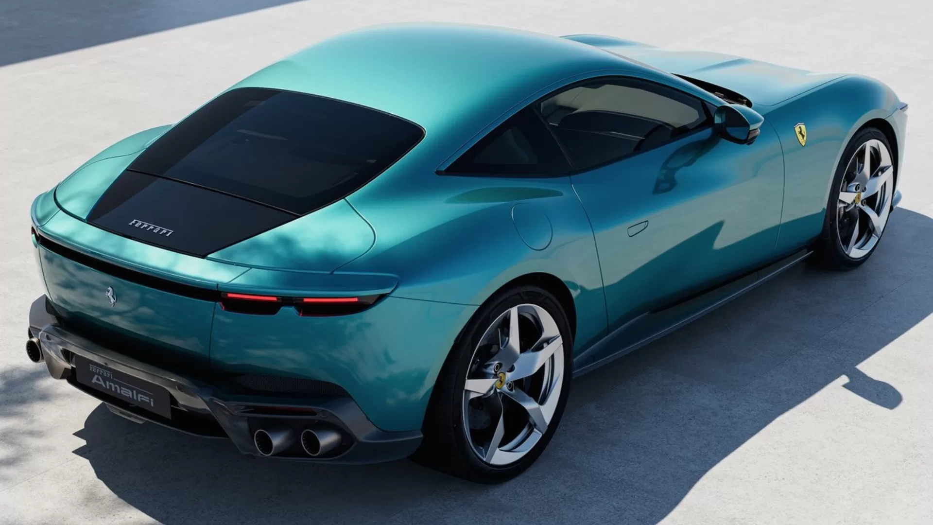 O visual do Ferrari Amalfi mantém a elegância da Roma, mas com linhas mais esculpidas e detalhes modernos. A dianteira traz uma grade aerodinâmica com spoiler funcional, enquanto a traseira integra um novo spoiler ativo que contribui para estabilidade em alta velocidade. O carro estreia a nova cor Verde Costiera, um tom inspirado no mar da costa Amalfitana.