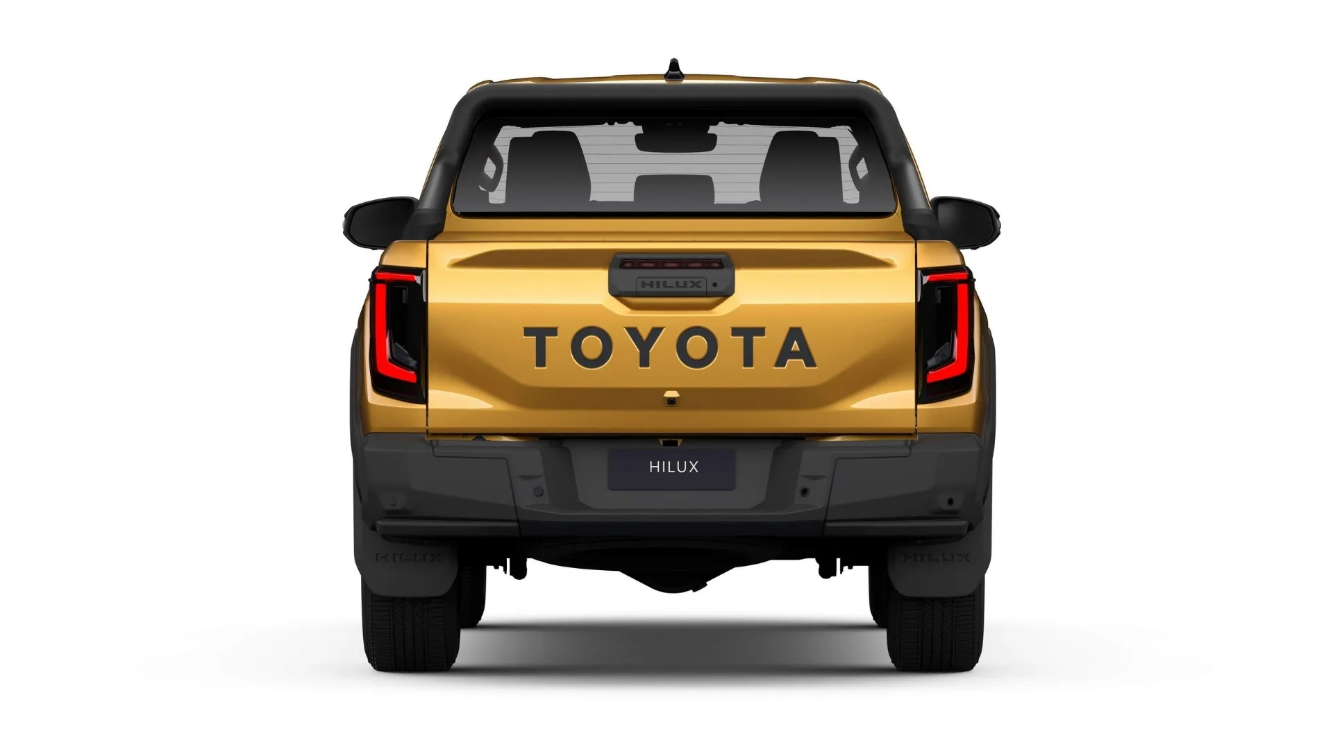 O design da Nova Hilux 2026 foi totalmente redesenhado para ser mais imponente e arrojado. A dianteira, mais alta e robusta, exibe faróis de LED afilados, conectados por uma barra central que ostenta o nome “TOYOTA” em estilo clássico, uma clara inspiração nos modelos off-road da marca.