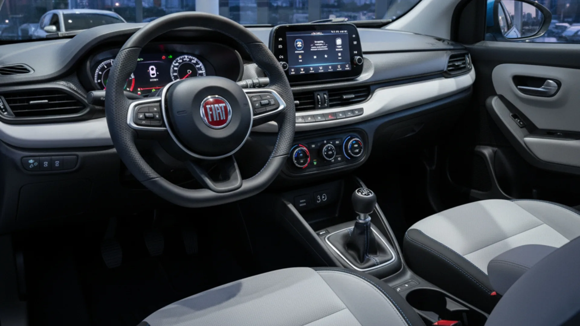 É no interior que o Novo Palio 2026 busca se distanciar dos concorrentes. O acabamento representa um salto quântico para a Fiat, com materiais de alta qualidade e um design que mistura modernidade e funcionalidade.